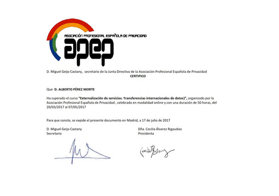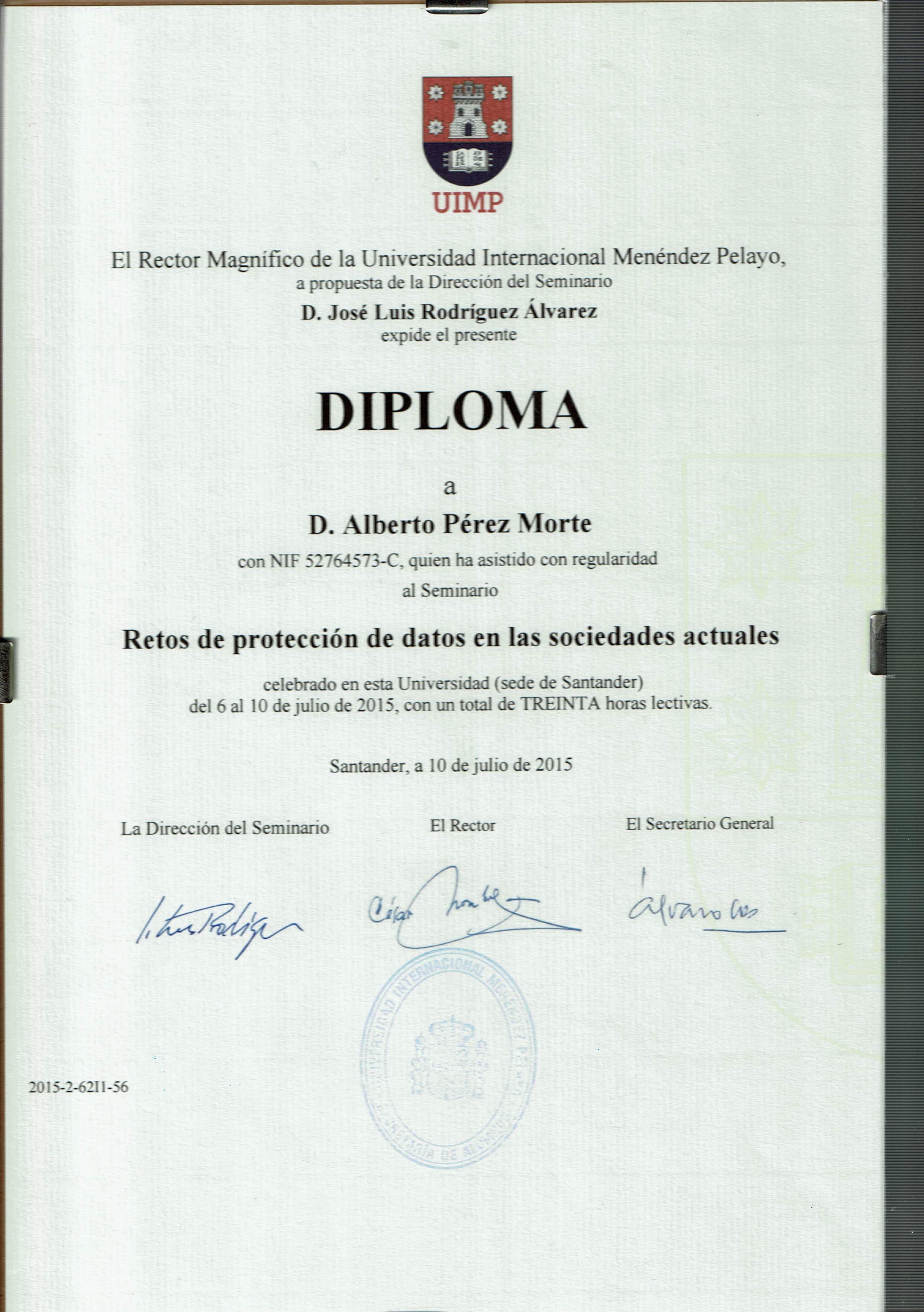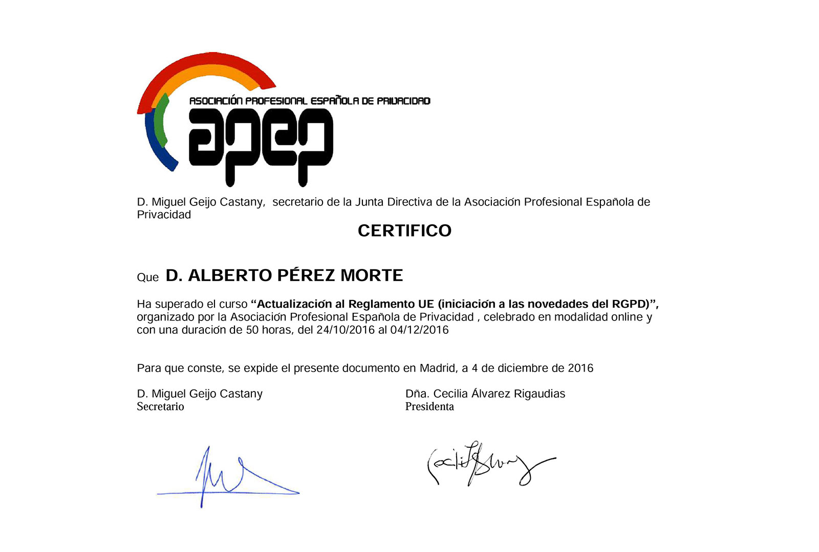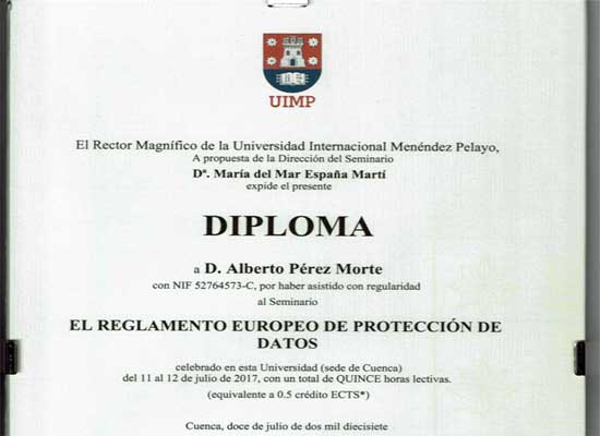 Alberto, fundador de la empresa, con una larga trayectoria como especialista en Nuevas Tecnologías y Protección de Datos Personales.
